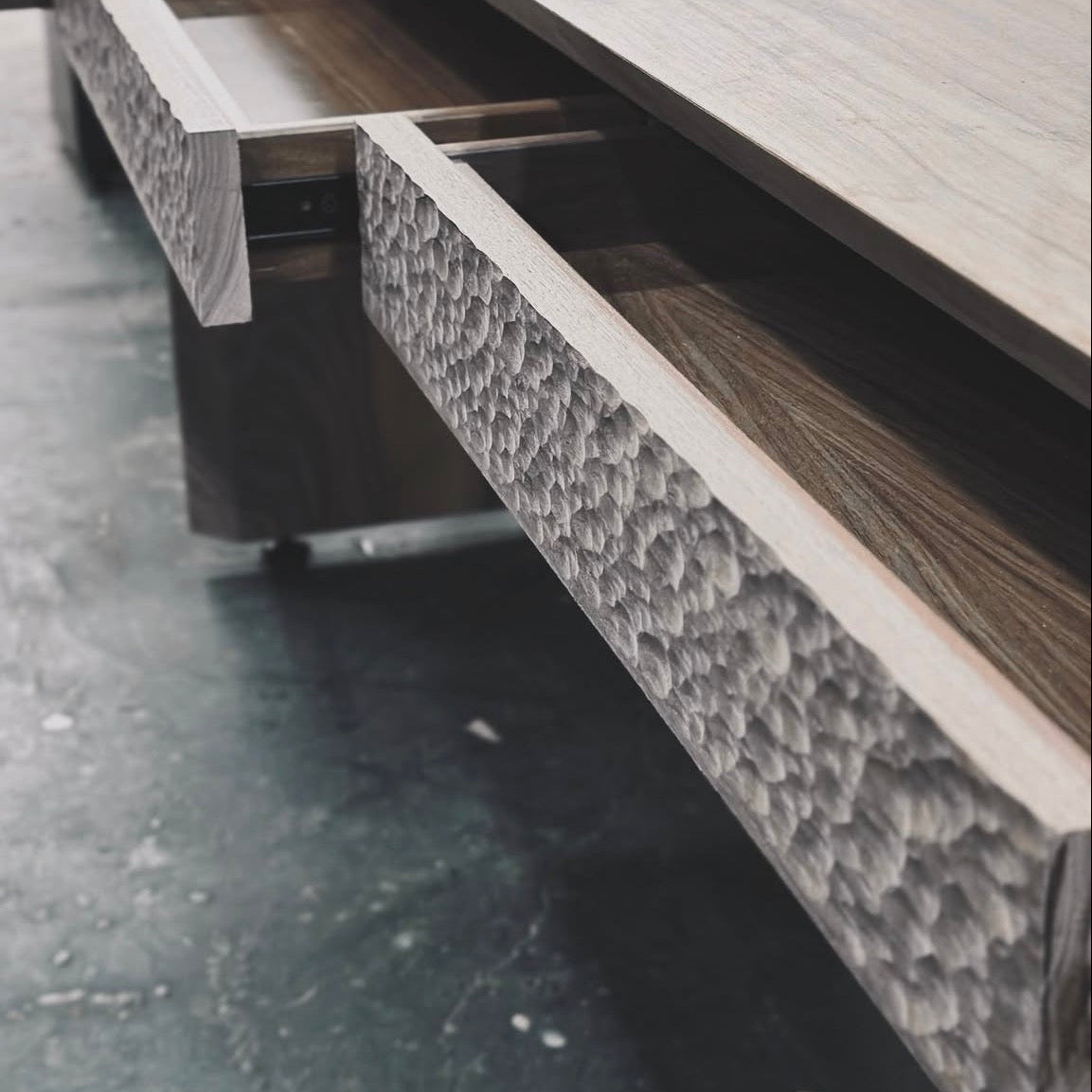 We work primarily with solid hardwoods — Walnut, White Oak, Red Oak, Maple, and Mahogany — along with plywoods, MDF, and select composites.