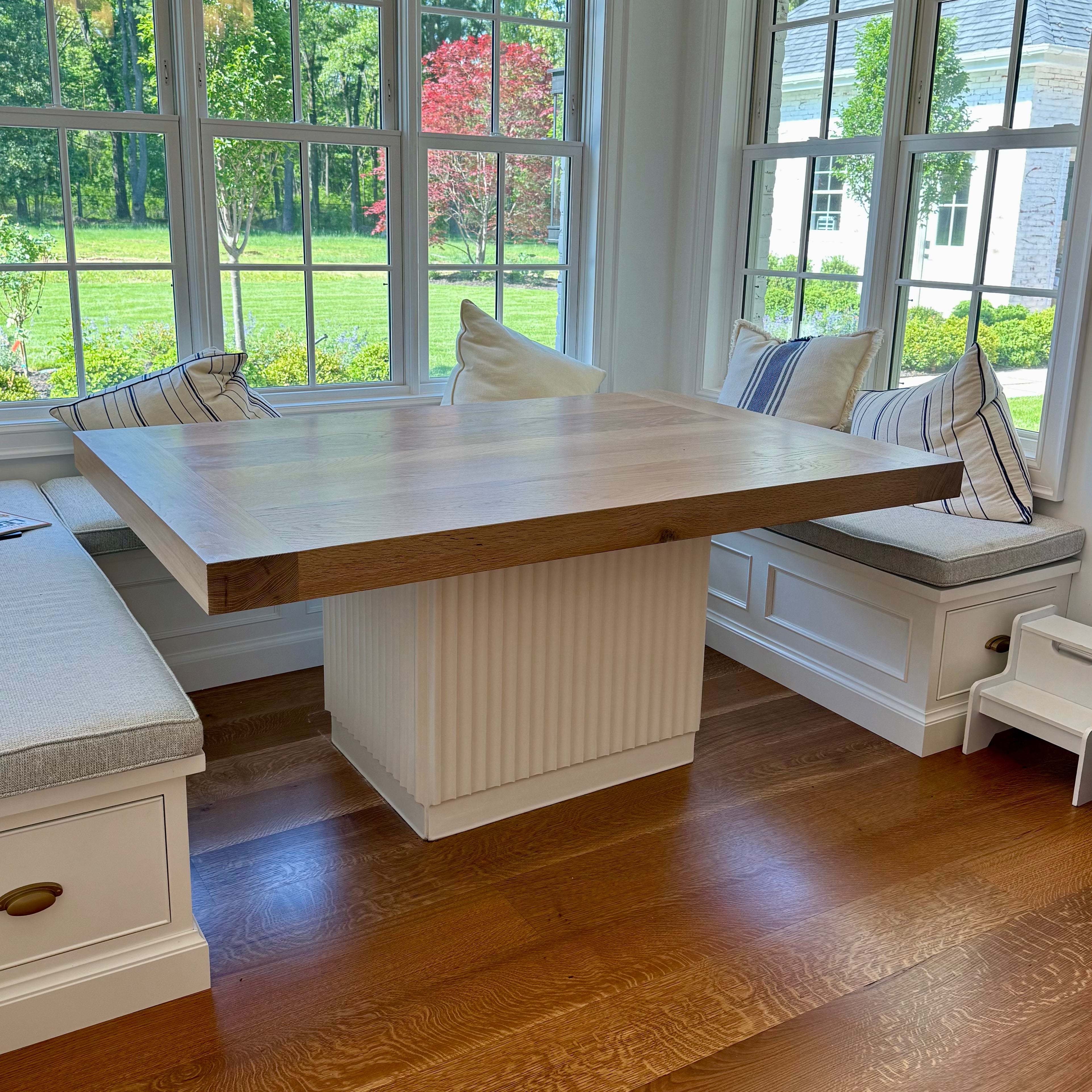 This custom bench was designed by Jorge Gomez and crafted by Formhaus for a private residence in Southampton, New York. Made from solid white oak, it showcases a minimalist architectural form with interlocking vertical and horizontal planes that emphasize the natural grain and texture of the wood. The design balances strength and simplicity, integrating seamlessly into the client’s refined interior. Finished with a matte, natural-toned sealant, the piece highlights the craftsmanship and material quality that define the Formhaus aesthetic — understated, precise, and built to last.
