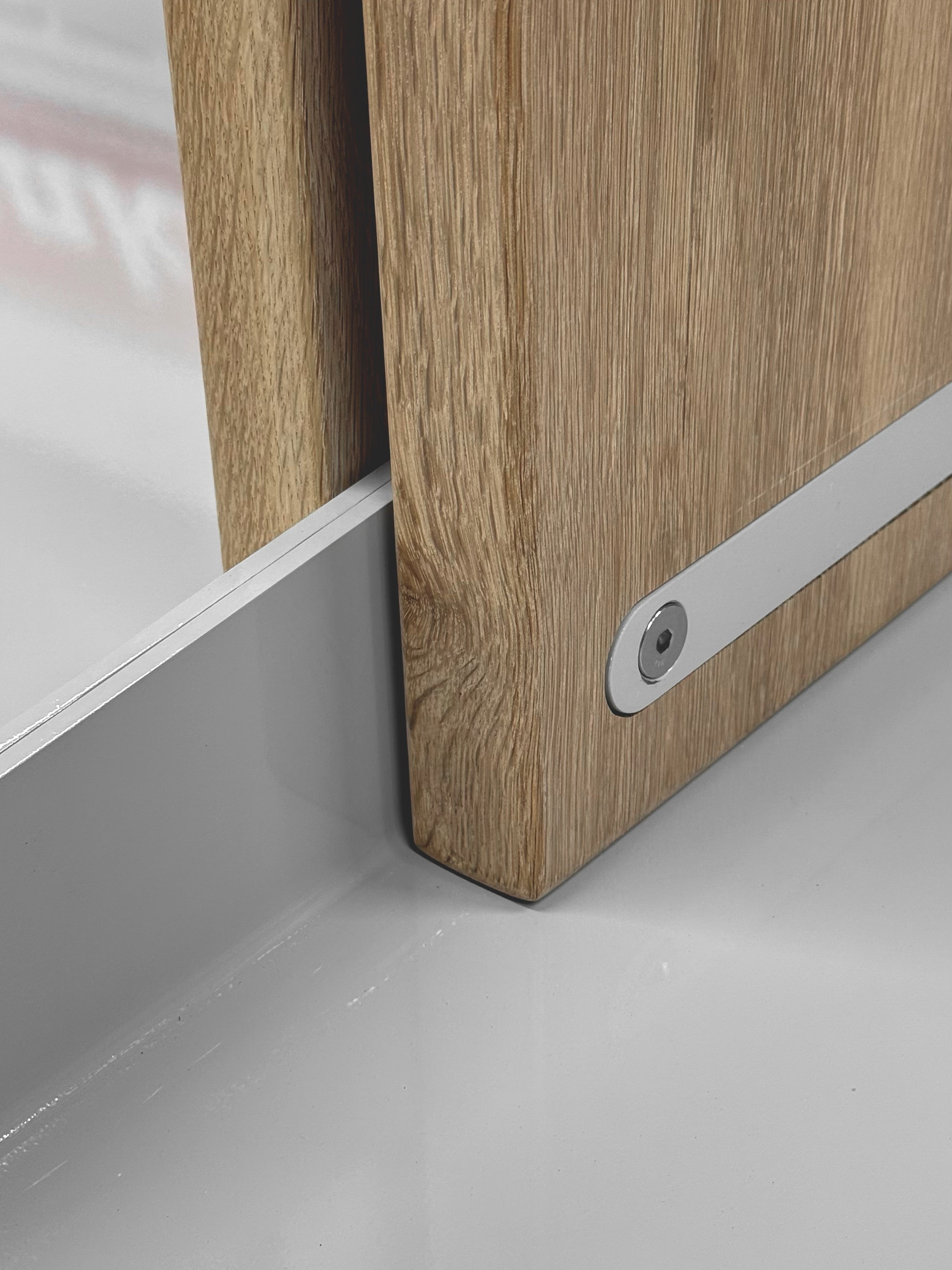 The contrast between the warm, natural oak grain and the cool, metallic surface gives the piece a refined architectural balance, seamlessly fitting into the home’s contemporary outdoor setting. Built to withstand the elements while maintaining a sleek, modern aesthetic, it reflects Formhaus’s dedication to craftsmanship, proportion, and timeless design.