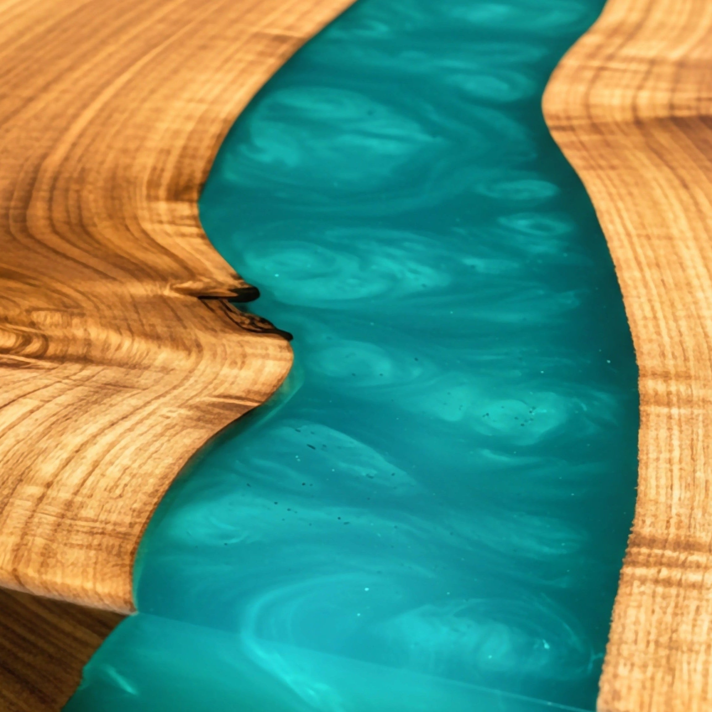 We build with Walnut, White Oak, Red Oak, Maple, and Mahogany — each offering unique tone and grain contrast against epoxy resin.